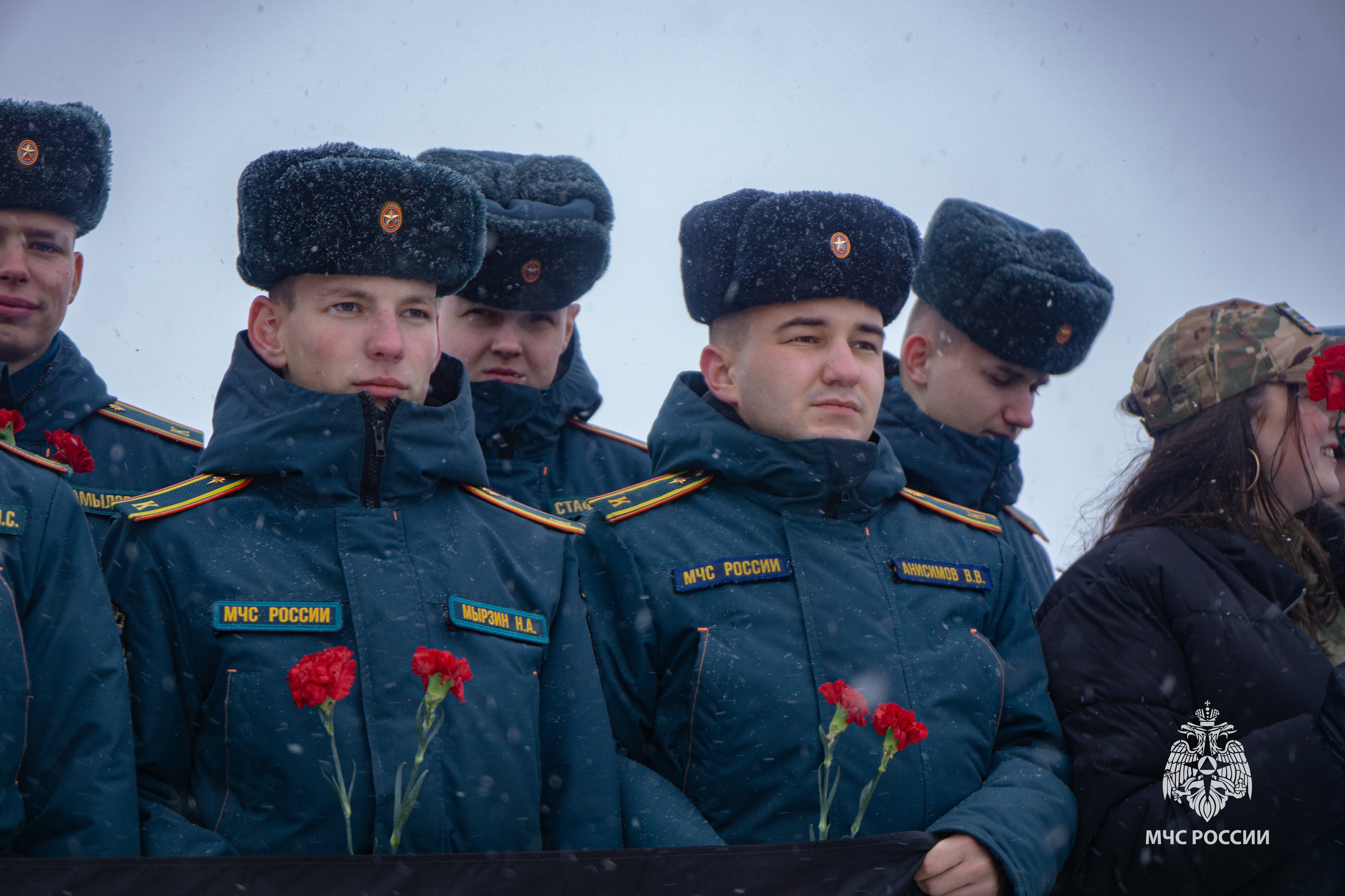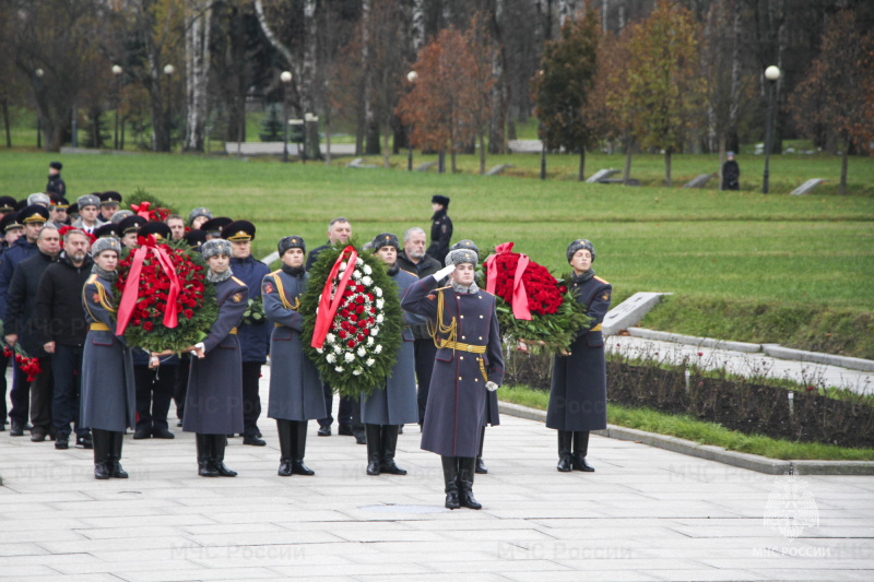 На Пискаревском мемориальном кладбище прошел традиционный траурный митинг. Руководство и сотрудники петербургского МЧС возложили цветы и венки к подножию монумента «Родина-Мать» и к памятной табличке погибшим милиционерам и пожарным