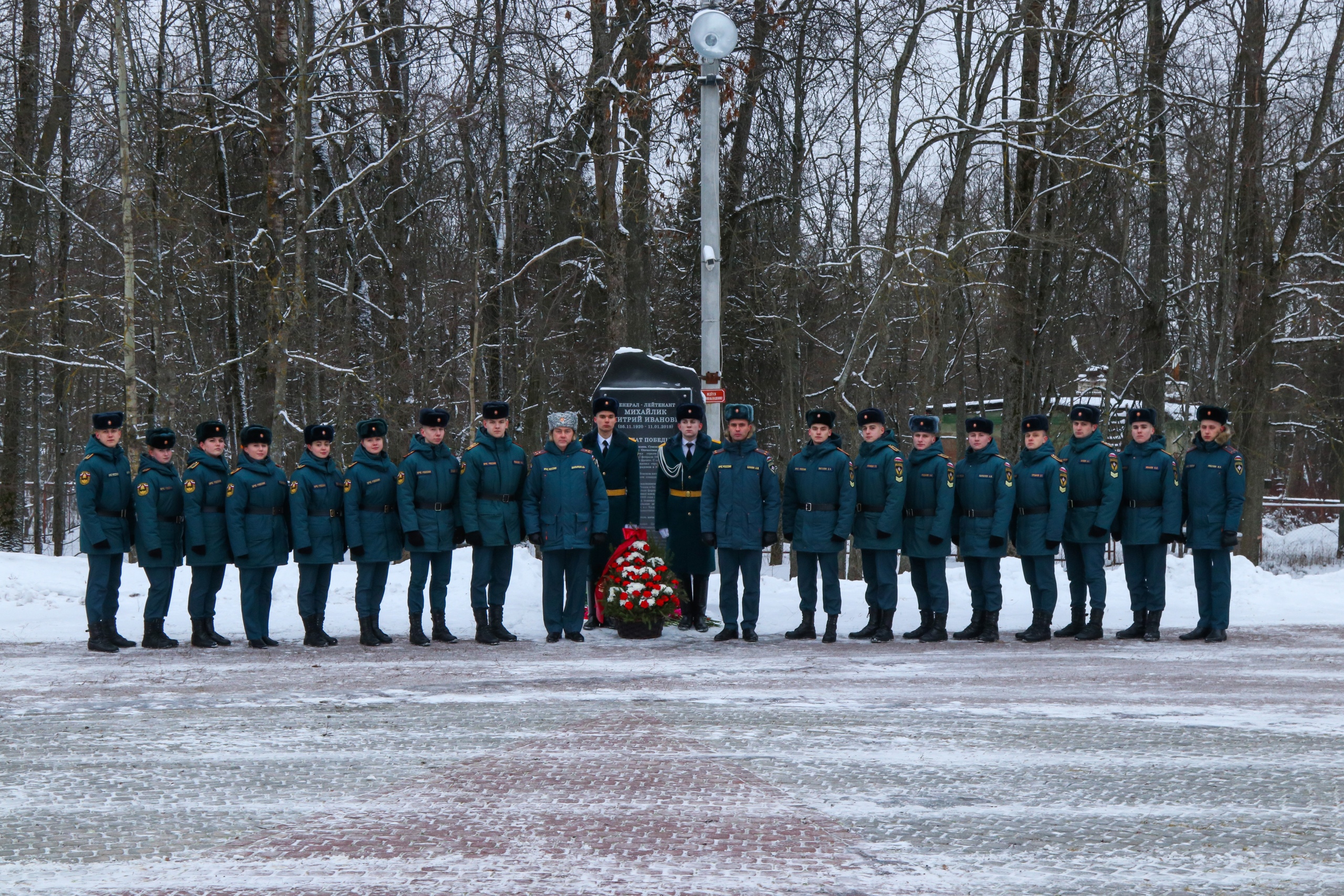 В поселке Ропша Ленинградской области почтили память легендарного советского генерала Дмитрия Михайлика, возложив цветы к памятному камню