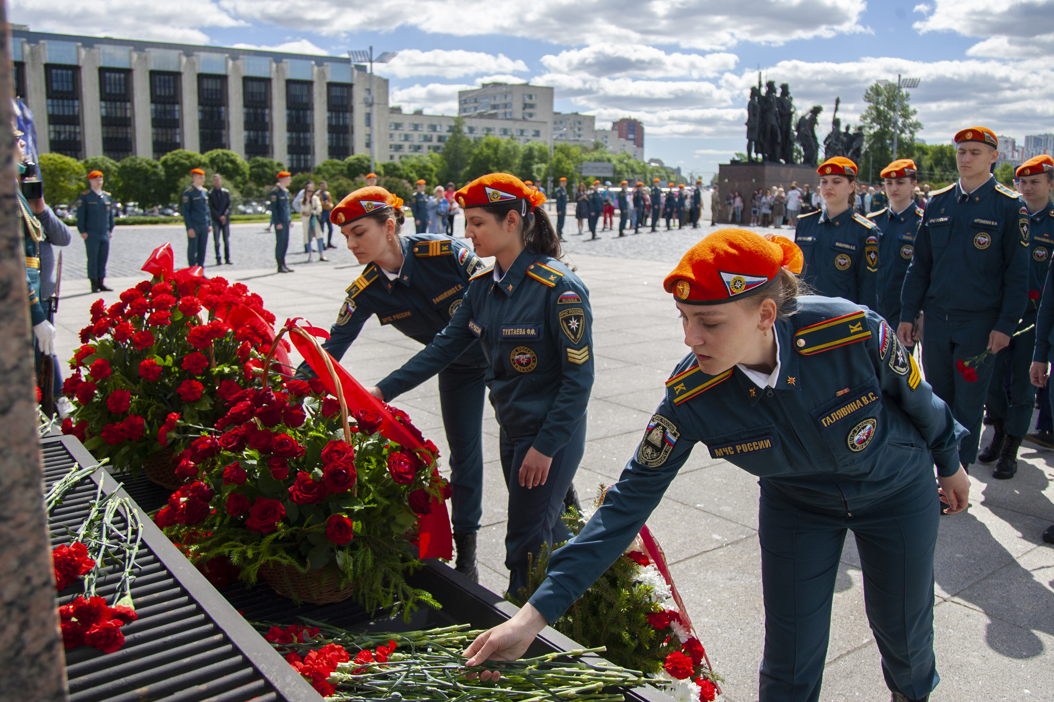 Руководство, ветераны, сотрудники и курсанты университета сегодня приняли участие в торжественно-траурных церемониях, посвященных Дню памяти и скорби