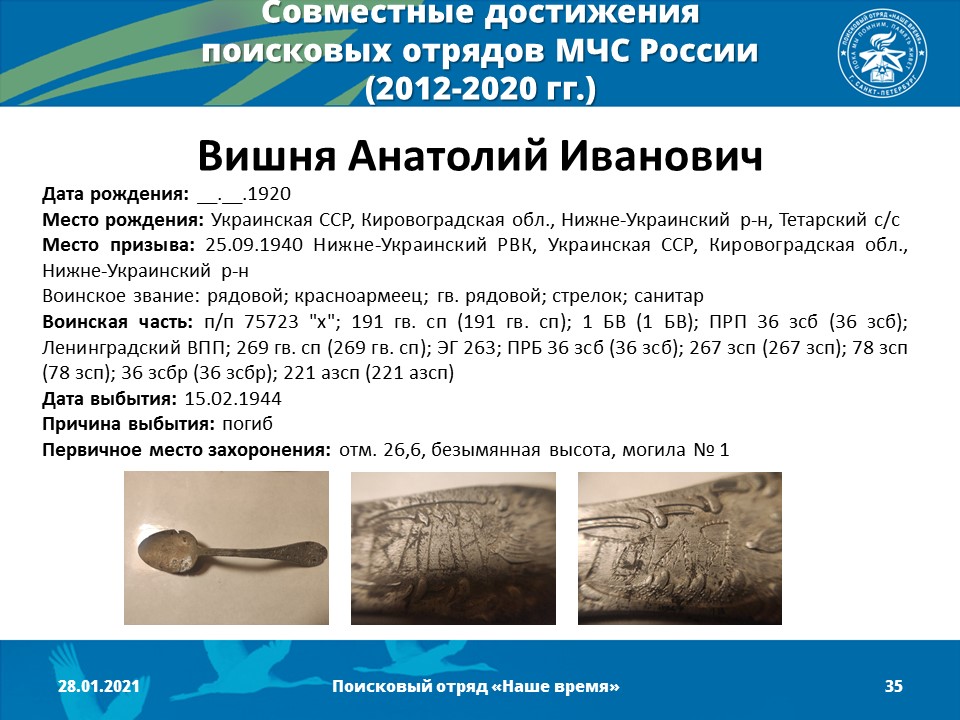 Установление имен погибших солдат и поиск их родственников;